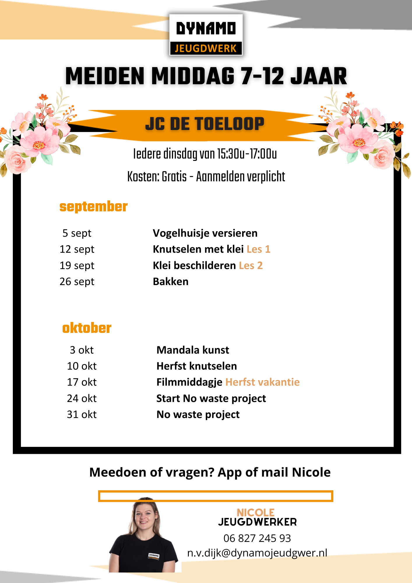 Of bel/app naar jeugdwerker Nicole, 06-82724593